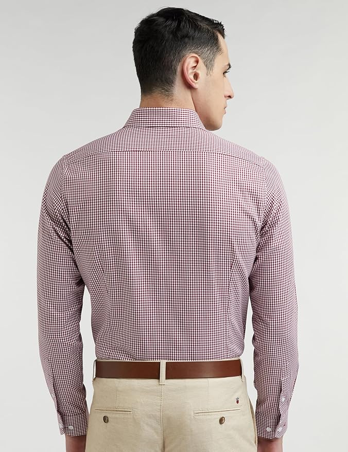 Elegant micro checkered pattern with classic regular collar and full sleeves.